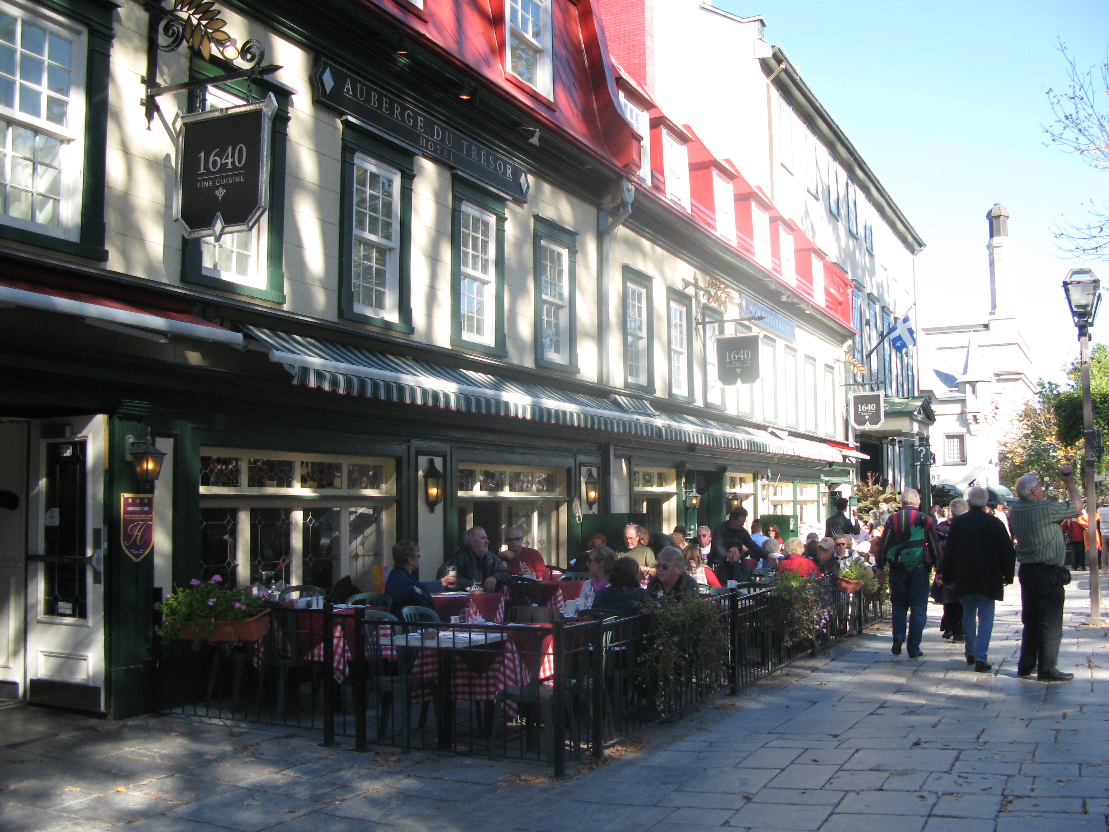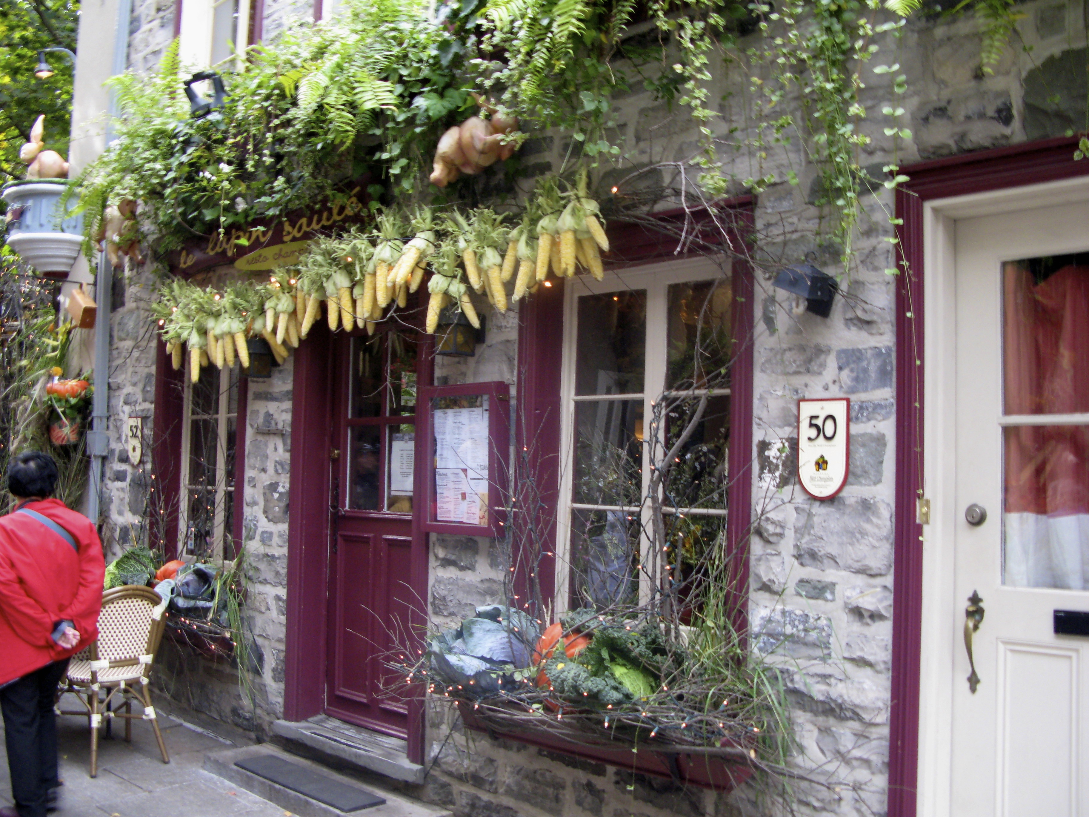 The sight is breathtaking. Here artists and musicians reveal their talents as we walk the promenade gazing down at the cruise ships in Vieux-Port and up, up, up at the Frontenec Hotel. It looks like a castle, but has always been a grand scale hotel. I am sad to say many tourists go no farther than the promenade and surrounding shops and restaurants. Meandering through the streets we find shops, cafes, restaurants and charming fall displays.