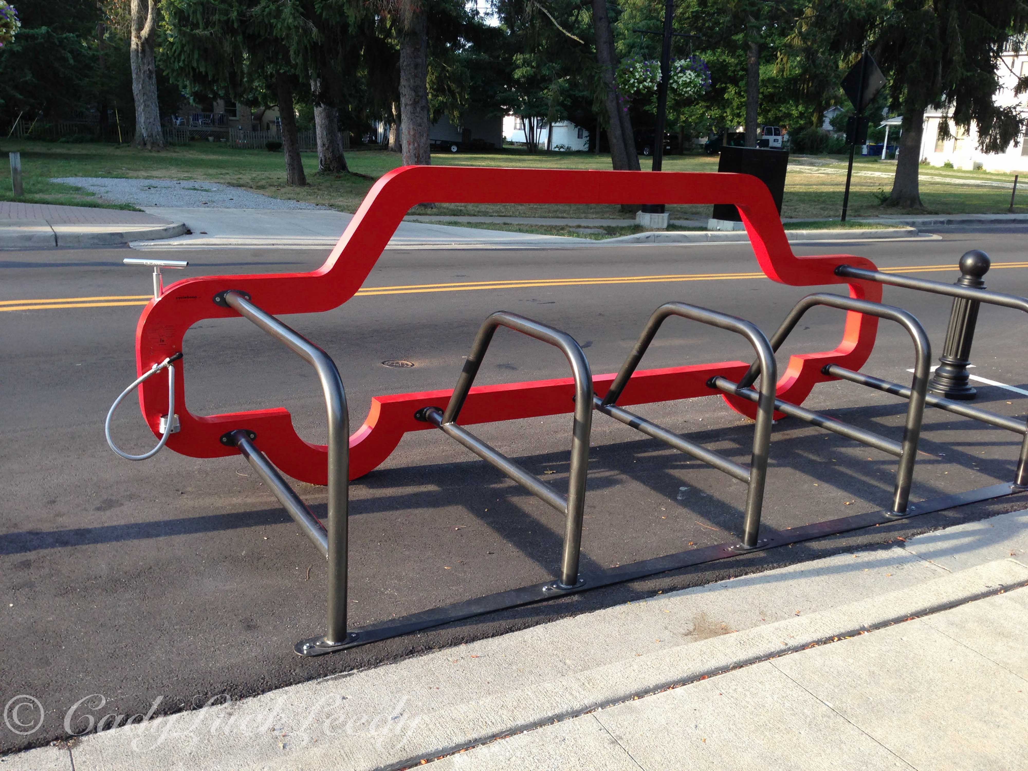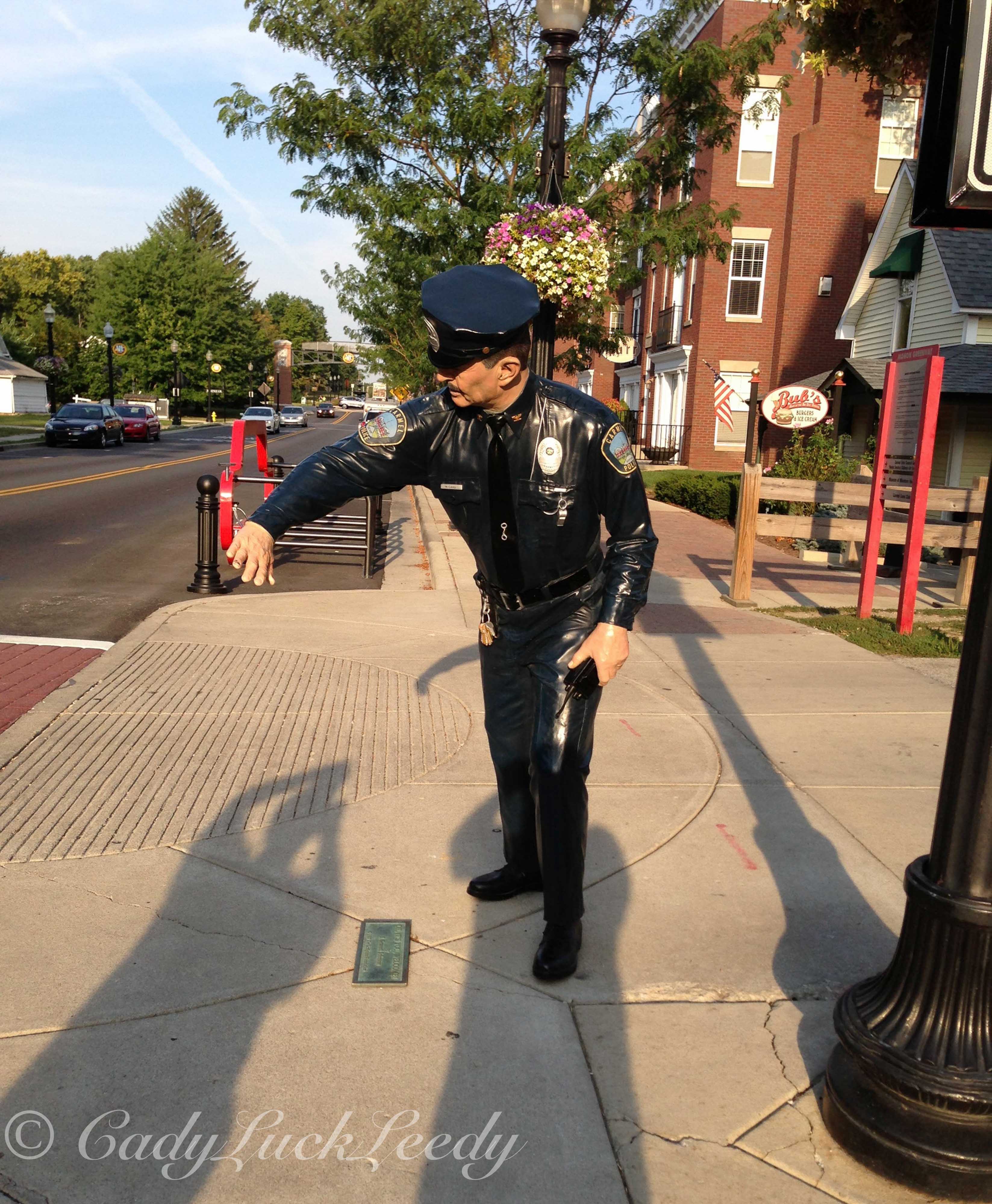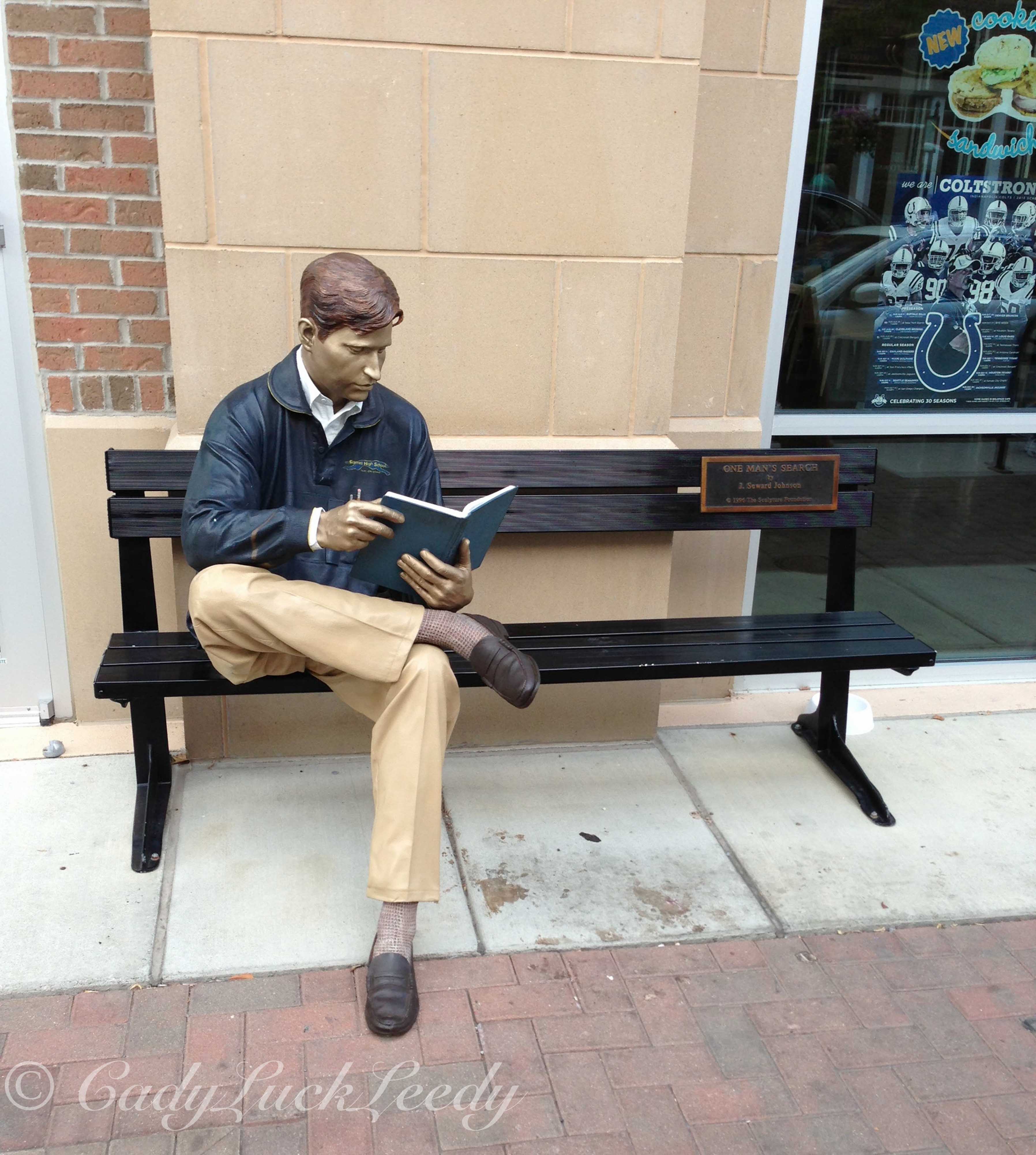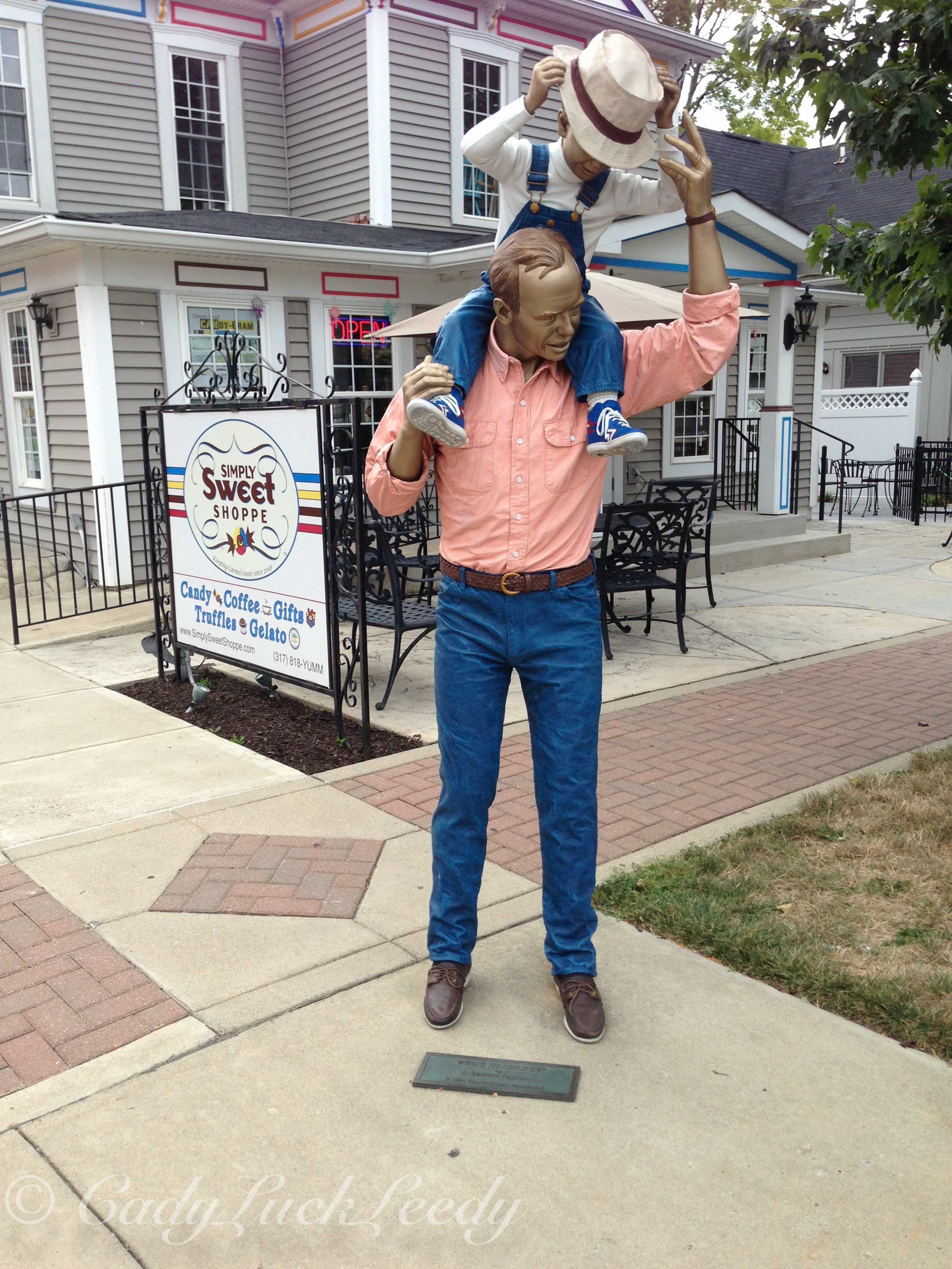 Walking past the storefronts in “Old Town” you come to a crosswalk where the sculpture of the policeman is. Look both ways here because the Monon Trail crosses this section of Main Street and is always busy with bikers, walkers, joggers, skate boarders, men and women walking dogs, families with prams, you get the picture, it is WONDERFUL!