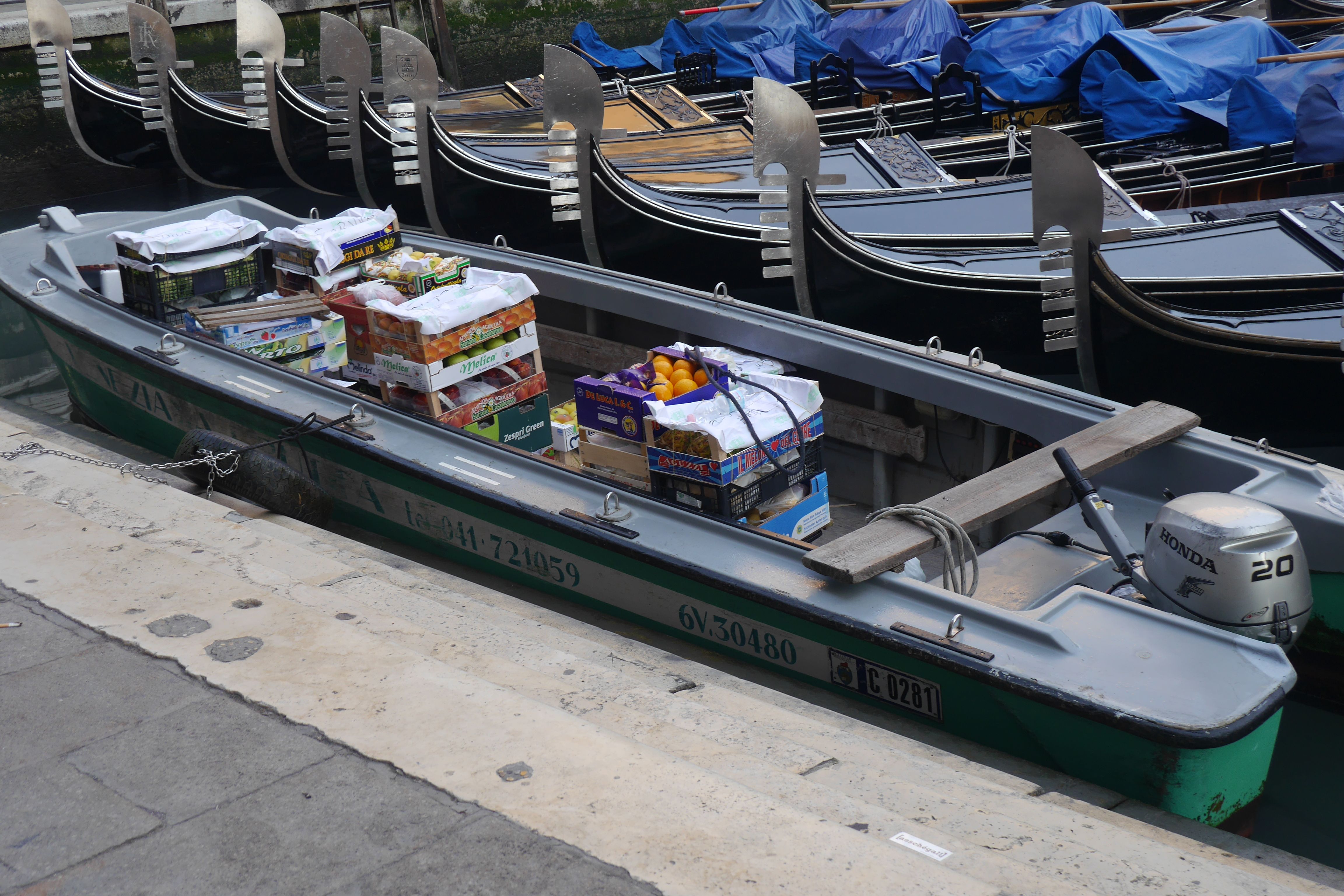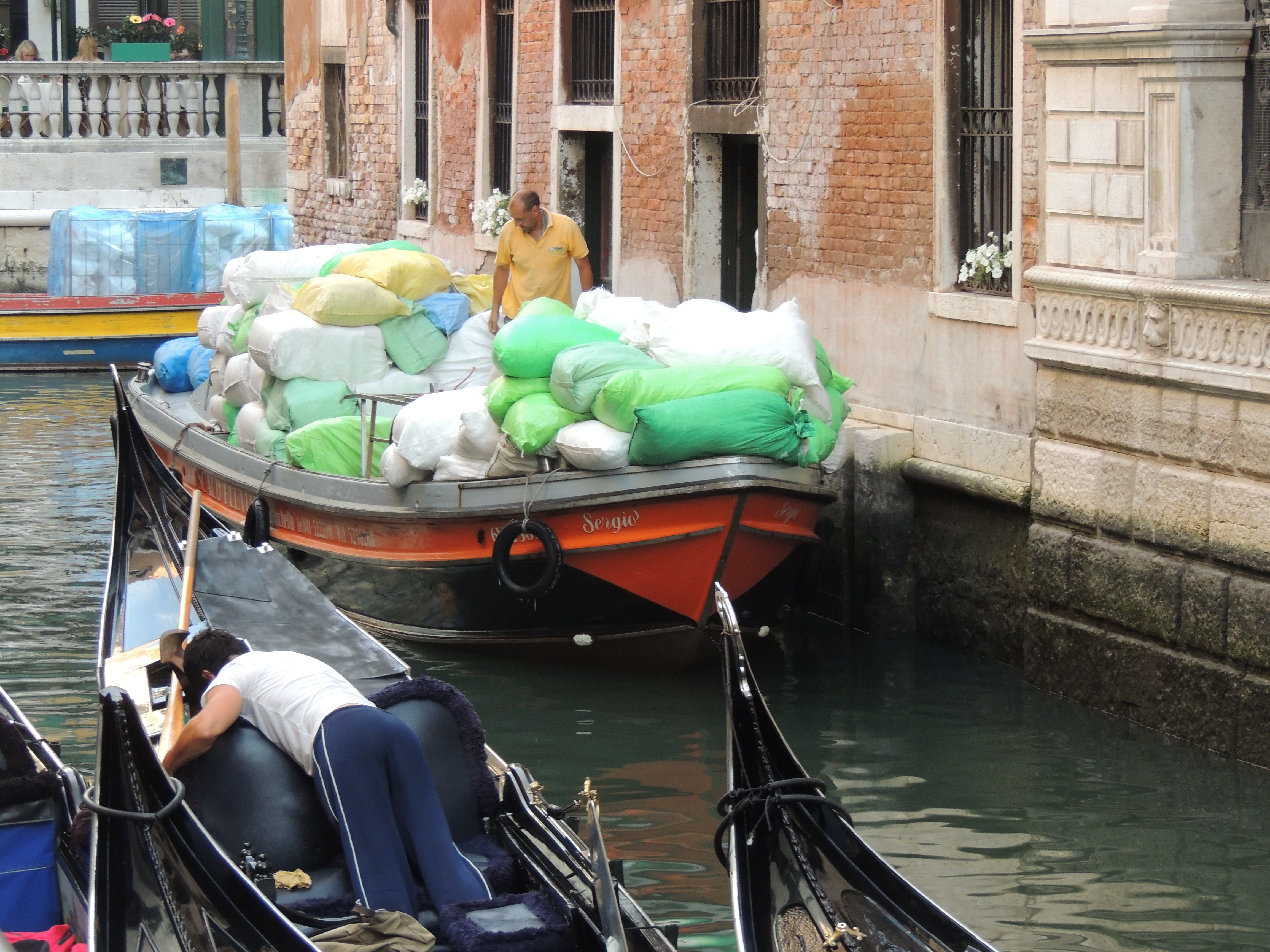 New day! 6am. We are up and out. The streets are empty! Yeah! We can take lovely pictures. What is that man doing? It’s a UPS man delivering goods. What a job that is!  Pulling and pushing the dollies up all those stairs and bridges! What’s that in the boats? Fluffy white bundles of laundry, pick up and delivery of sheets and more sheets! What a job that would be! The men row up to little doors along the water. The doors open and out comes the bundled dirty laundry and in goes the fresh! The vegetable man is in another boat, delivering fruits and vegetables in the same fashion. Wow, it pays to be up early and see all the action! 9 am, done with pictures for this morning.  Back to the hotel to eat breakfast.  Good morning, good morning, lovely day! We’ll rest up after breakfast and head out again after 1pm when the cruisers are done. Perfect day!