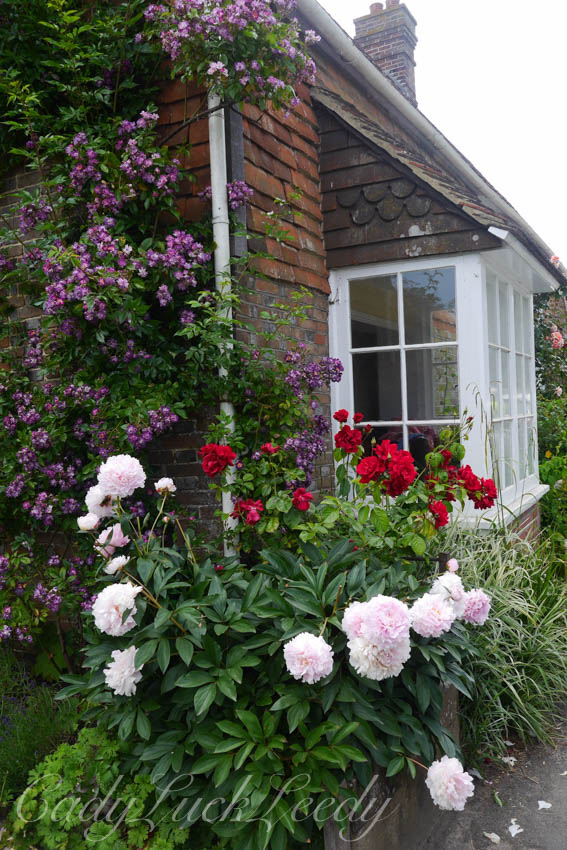 Across the street from the Church of St Andrew and St Mary the Virgin, in the village of Fletching, is a row of tiny, clustered, connected cottages that look just like dollhouses. The garden at 1 Whites Cottage is compact, and exactly what you would think a cottage garden should look like. Following winding paths there are lovely groupings of flowers, delights for the child of any age, and riots of color, color, color in that messy, disheveled look imagined in fairy tales. What child could not spend the day in a gypsy caravan surrounded by a family of ducks?  Snuggled in your perfect spot, this cottage is where stories are told. Let’s take a peek at Whites Cottage, one of the cottages on the National Garden Scheme.