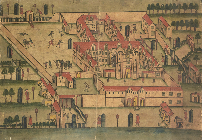 By 1730 Sir John Baker died, leaving four daughters and as there were no men descendants left, the estate was sold to Horace Mann, who never lived there, but leased the property to the government to be used as a prison, during the Seven Year’s War. French Naval officers were housed in the tower and some of the graffiti of sailing ships, names, and dates still remain there. The three thousand prisoners referred to their prison as Chateau de Sissinghurst, and the name stuck. By the end of the war the sailors had destroyed the property; trashing, burning and looting the fine architectural details from fireplaces, doorways and windows.
