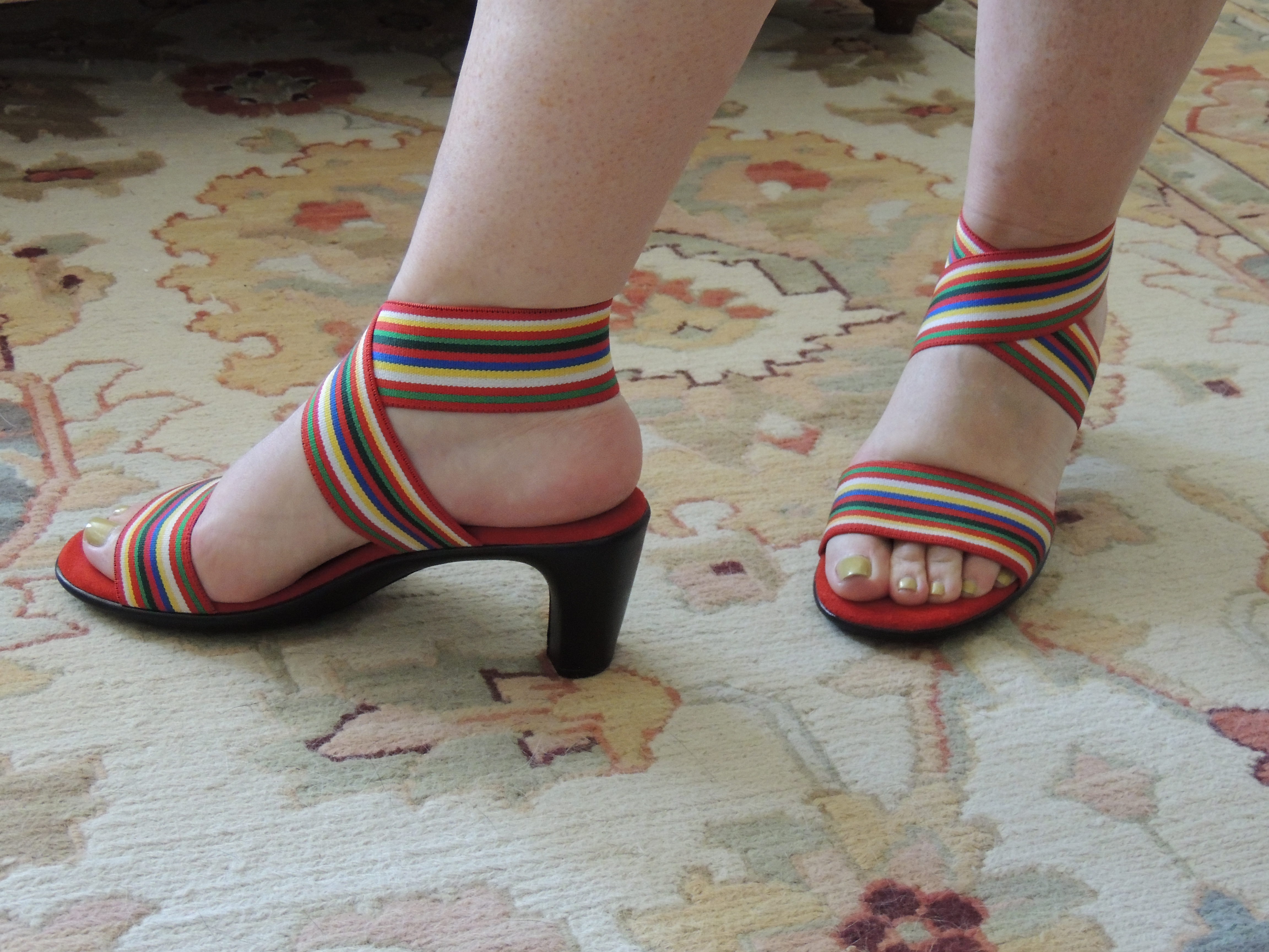 For shoes, your new best friend, will be the plastic sleeves that the newspaper comes in. Perfect for shoes, slide the shoe in and pack them. Keeps everything clean. I wear my heaviest shoes on the airplane and pack another pair in Papa Borsa’s front pouch, which is easy to get to. I take three pair of shoes total. One pair of black sandals, for dressier occasions without extensive walking. Also, two pair of walking shoes. We tend to walk a lot, so comfortable shoes is a must. One tan pair, one black. Again they will go with all my outfits. Do not take white tennis shoes! You will stand out in the crowd as the loud, touristy American! They make all sorts of colored, fancy or not, walking shoes and they are stylish anywhere, so you will blend in. I also bring a small roll of duct tape in a bright color to make a fashion statement. Ha Ha! Place a strip on the back of your ankles before you leave home and you will never get a blister, no matter how far you walk!