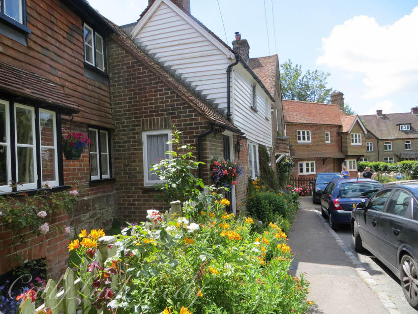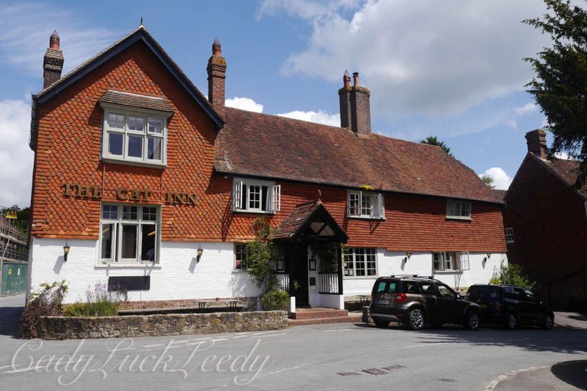 The Cat Inn is the 16th century pub of medieval origin standing in the crossroads of the village. The name is derived from an emblem of the Sackvilles of Knole, which is a leopard. We will be learning  a lot about the Sackvilles, a very prominent family in Kent. This is the pub I had picked to stop in for lunch after touring the village. It was highly recommended by the locals also. We sat in the lovely terrace and had a most agreeable meal. Now on to the next garden in the “burbs” of West Hoathly.