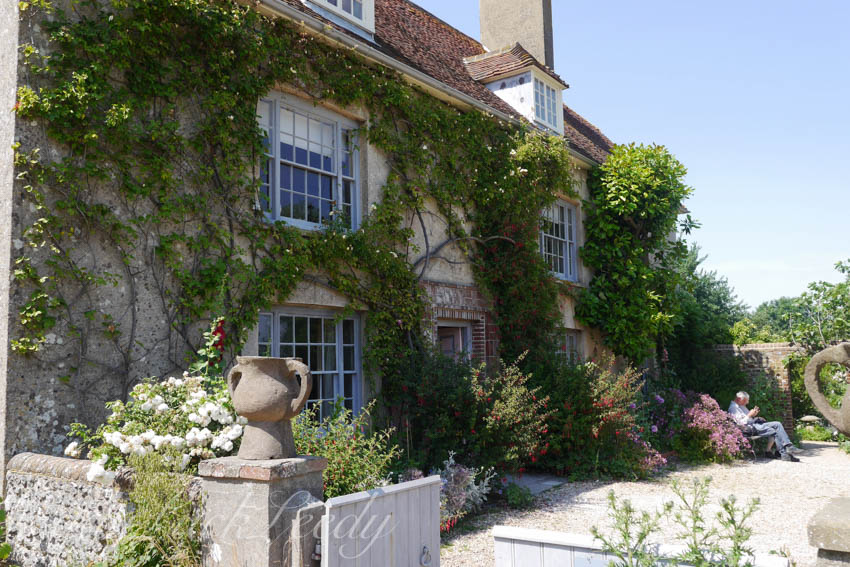 There is no picture taking allowed inside Charleston Farmhouse and only a small group is allowed in at any one time with a well versed guide. You must make a reservation or risk not getting in or having to wait. The rooms show a complete example of the decorative art of the Bloomsbury artists: murals, ceramics, paintings, textiles and objects from their Omega Workshops. Vanessa’s room was painted by Duncan, Vanessa’s lover. (a triangle between her, Duncan and David Garnett) He painted a huge red dog above her bed, to always protect her, and she painted his room in delicate pastel circles, squares, and flowers. There are lots of bedrooms in the farmhouse and what struck me the most were the various ceramic numbers above the doorway representing a specific room. For some reason it reminded me of something you would find in a bordello. Maybe because the guide kept reminding us of all the people who came and went and their various activities there. They did more than paint, write, or talk. The farmhouse was interesting and different and the garden was beautiful. It is now owned by the Charleston Trust, a charity set up in 1980 to restore and maintain the property. Every May there is the Charleston Festival, which draws artists and writers alike to promote the arts. For more information about the Charleston Farmhouse see here. There were several very knowledgable artists among our tour group and artists could be found painting or sketching in the garden while we were there, so it is still an artists’ hangout. Let’s walk through the garden!