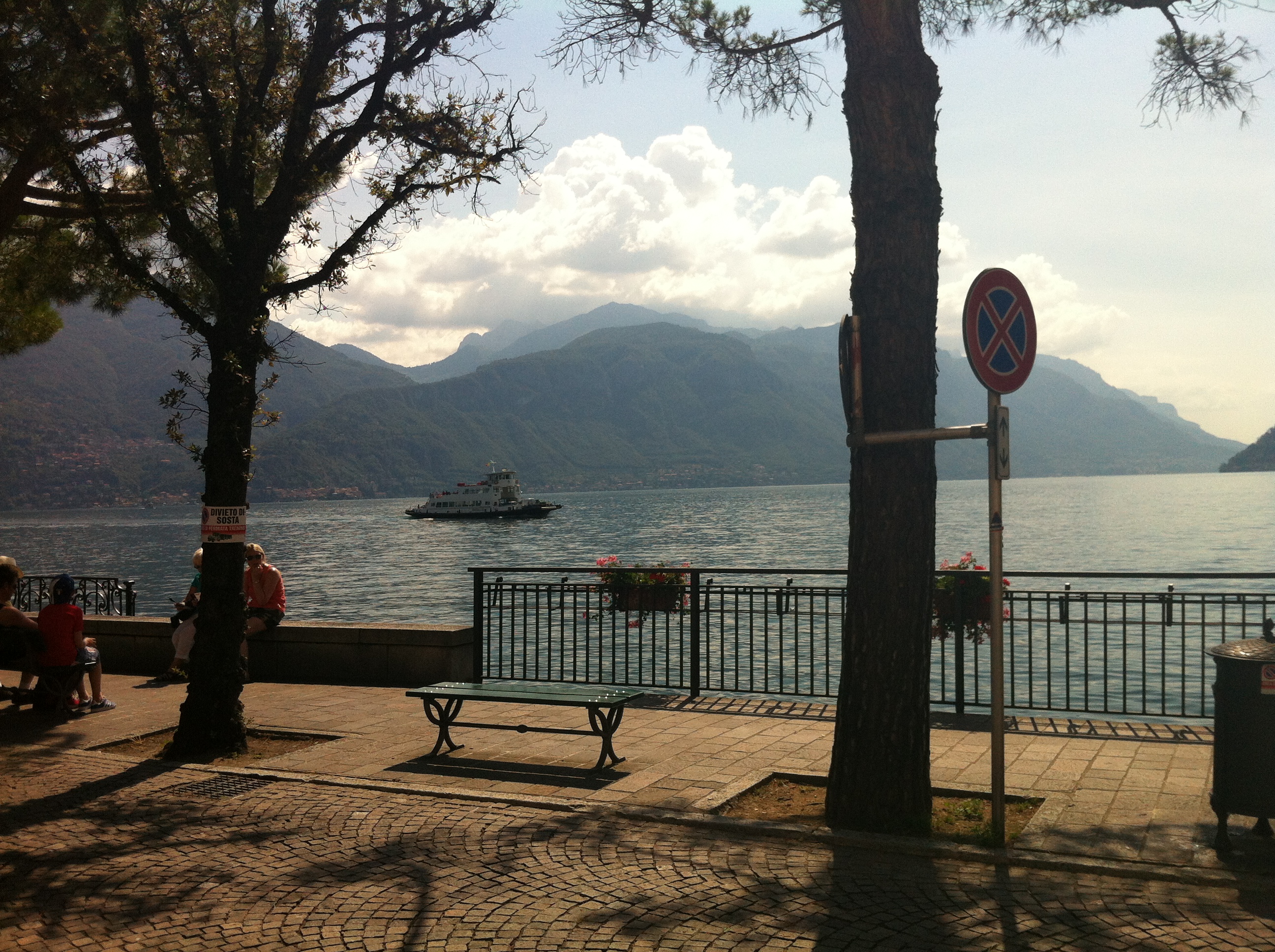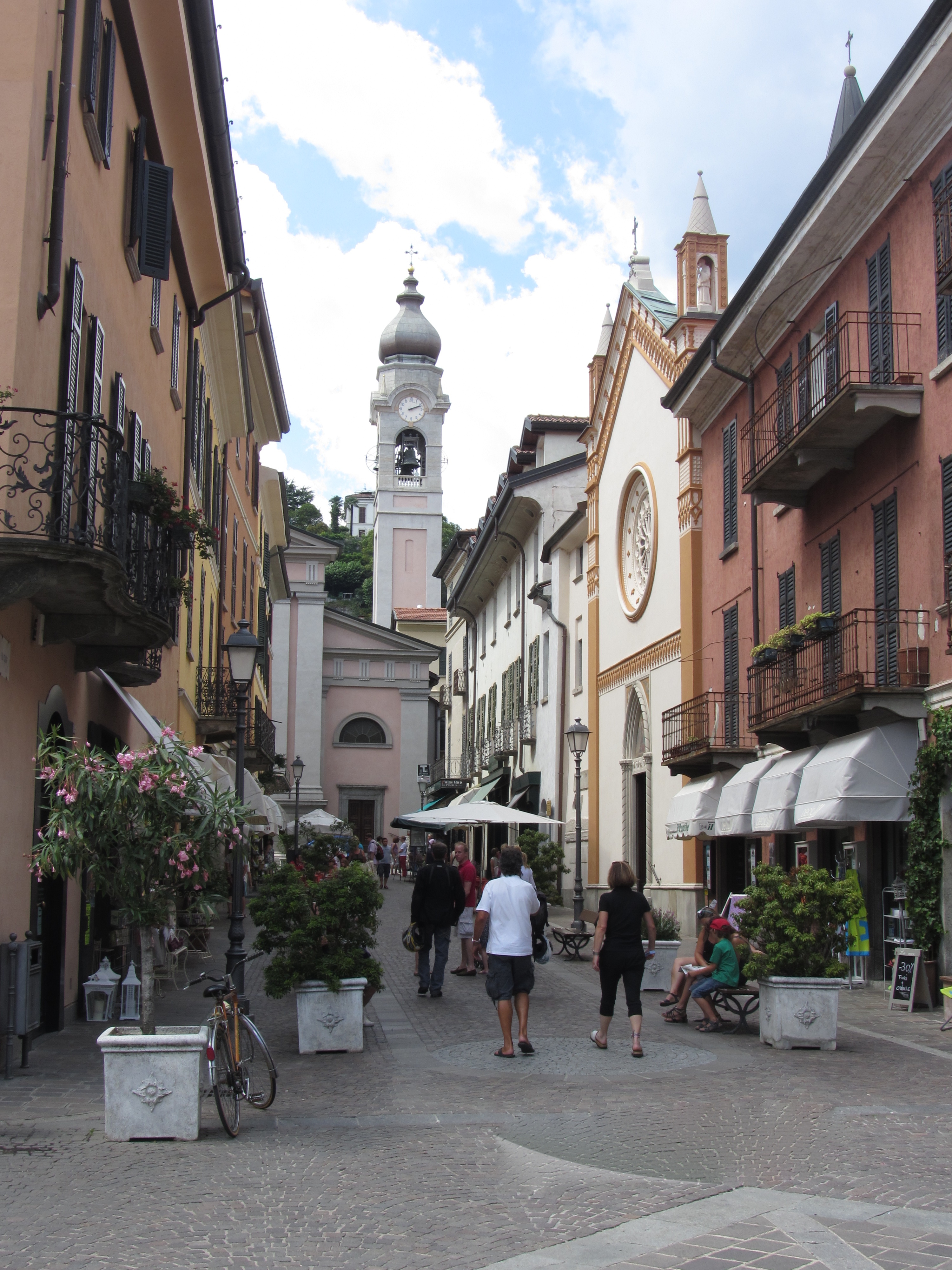 Our last stop of the day is Santa Maria della Grazie Church and we are thrilled to find admittance tickets waiting for us! The church is now hermetically sealed, so you go through sections of air filter stations, filtering the air from the outside, until it is deemed pollutant free and we are admitted. At last, a group of twenty, is turned out into the refectory for 15 minutes at a time. In the Convent, where the work on the end wall was started in 1495, the mural, measuring 180 inches by 350 inches, represents the scene of the Last Supper of Jesus with his disciples. Completed in 1498, the mural specifically portrays the reaction given by each apostle when Jesus said one of them would betray Him. Working a new technique, dry plaster rather than wet, and choosing to seal the stone wall with a layer of pitch, gesso and mastic, da Vinci painted the sealing layer with tempera. Due to this method the piece began to deteriorate a few years after he finished it. As early as 1517, the painting was starting to flake and by 1556 it was deemed “ruined” and so deteriorated, the figures were unrecognizable. In 1652, a doorway was cut through the painting, so the monks could get to the kitchens easier. This door was later bricked up, but can still be seen as an irregular arch shaped structure near the center base of the painting. In 1768, a curtain was hung over the painting to protect it; but instead it trapped moisture on the painting’s surface and whenever the curtain was pulled back, it scratched the flaking paint. In 1821, Stefano Barezzi, an expert in removing whole frescoes from their walls intact, badly damaged the center section of the mural before realizing the work was not a fresco.(Painted on wet walls) He then attempted to reattach the damaged sections with GLUE. From 1901 to 1908, Luigi Cavenaghi completed a thorough study of the structure of the painting, then began cleaning it. On August 15, 1943, the refectory was struck by a bomb, but a protective structure of sandbags and an additional wall in front of the painting protected it from bomb splinters. Pictures of the damage to the church line the walls upon leaving. It was the only wall left standing. We leave Milan and return to Menaggio by train and then ferry, weary but so thankful we have been able to see some of the greatest art in the world.