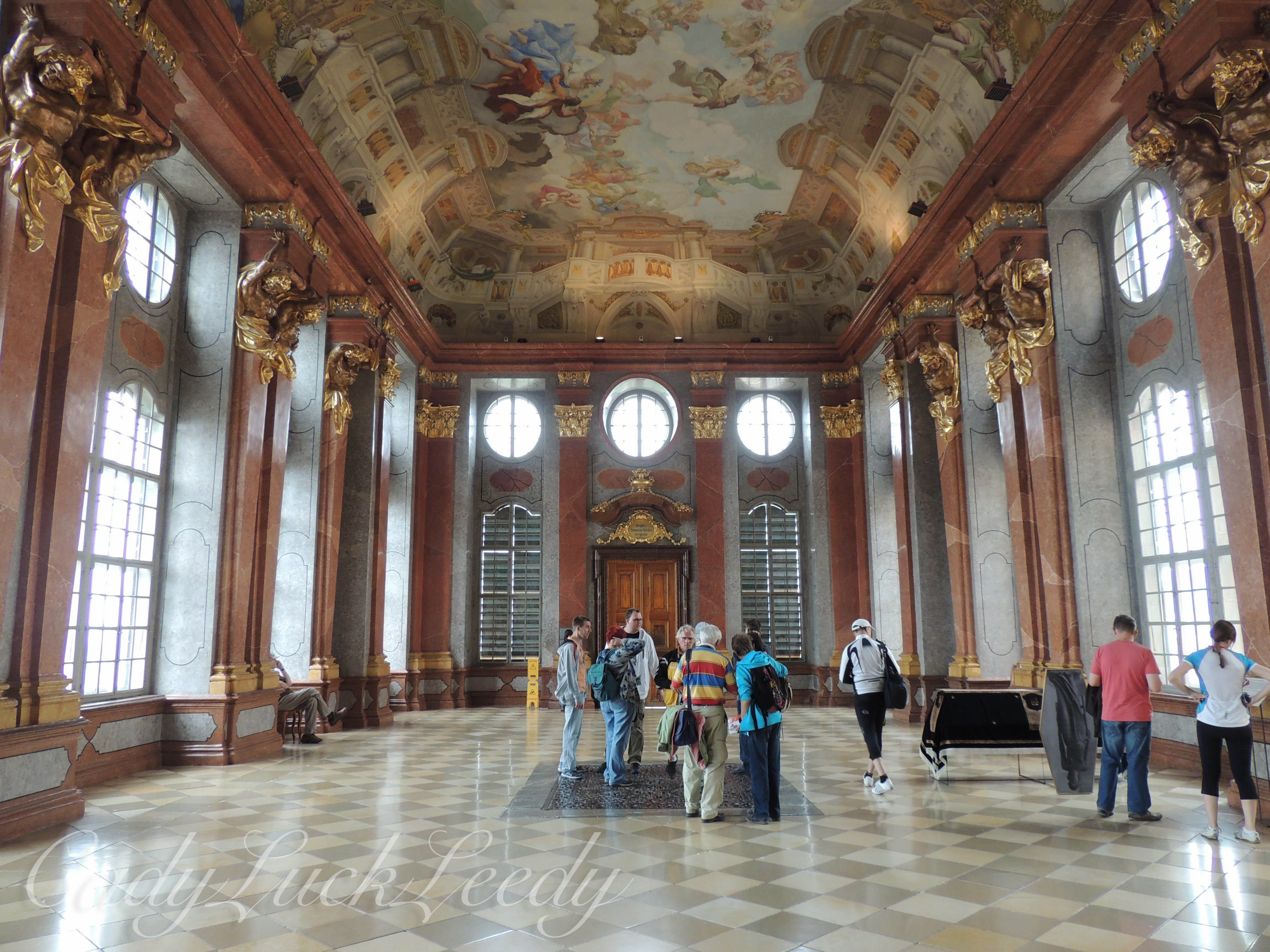 Planning a day trip to Melk was fun too. Taking the elevator on the street to the multi-layered train station (there were local trains and metro trains all converging into one area) we found the trains conveniently stopped in a large, beautiful, shopping mall and market, they called the train station. You could just skip the train and spend a lovely day eating and shopping here! The Austrian Railway Office sold a convenient Combi-ticket, which included the train trip from Vienna to Melk, entry to the Melk Abbey, a boat cruise to Krems and the return train trip to Vienna for 47 euros. What a deal! So early one morning off we went to Melk!