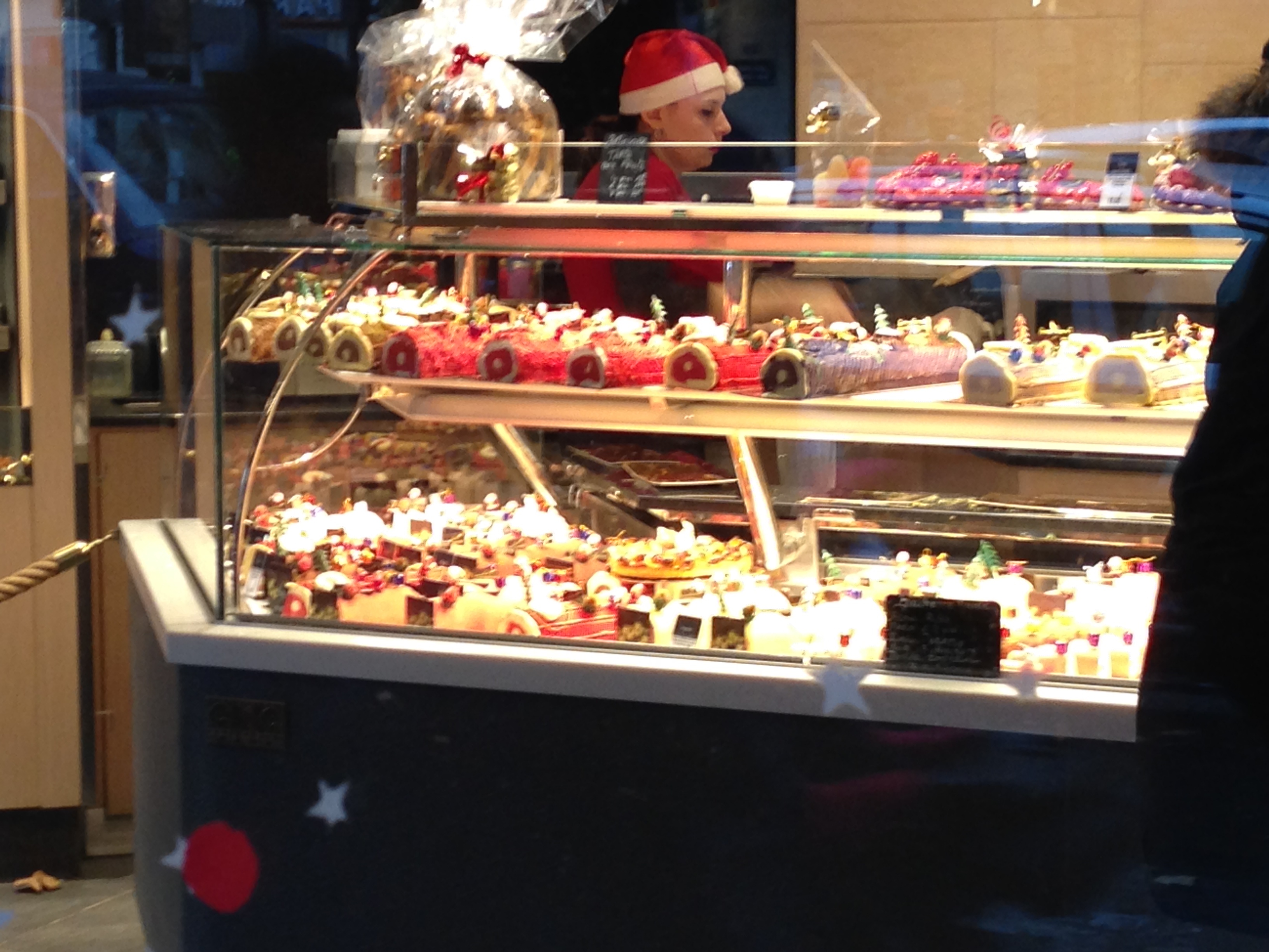 I have set a goal to stand in one of those lines and see what all the hubbub is about concerning a falafel, but tonight won’t be the night. We hobble into a restaurant. We have not been here before, but I am curious about it because the windows have so many hand written messages on it, in French. Because of the writings it is impossible to see in, but the tables are always full outside. There are lines to get a table inside, so eating in will be out of the question too. I think I’ll just look over all the goodies in the sandwich and pastry counters. There is a waiting line for the to-go items also. The women in front of us take matters into their own hands. Reaching for the tissues and bags they begin placing assorted pastries into a bag. A gent in a white apron comes to the front of the counter and points to one of many signs behind the cash register area. Do Not Touch Pastries, Ask for Assistance. These women speak French and ignore him. More signs. There is no Wi Fi Here. Please Wait to Be Seated. Wait to be Seated Outside. Cash Only. Do Not Move Beyond This Line. You Can Find Us on TripAdvisor. Just a few of the instructions that I remember. These pointers are in English, so I know who they are for. As we wait our turn I study the people, the signs, the food. The apron gent now nods to a helper/cook/waiter, I am not sure who he is, but this man comes to help us, although not happy to have been given such a lowly assignment. I point, he selects. He drops the goodies into the sack. We take the bag to apron man, who has been giving all the directions and I see he is also the man in charge of the cash register. I think this is sooooo French. They have a way of doing everything…..